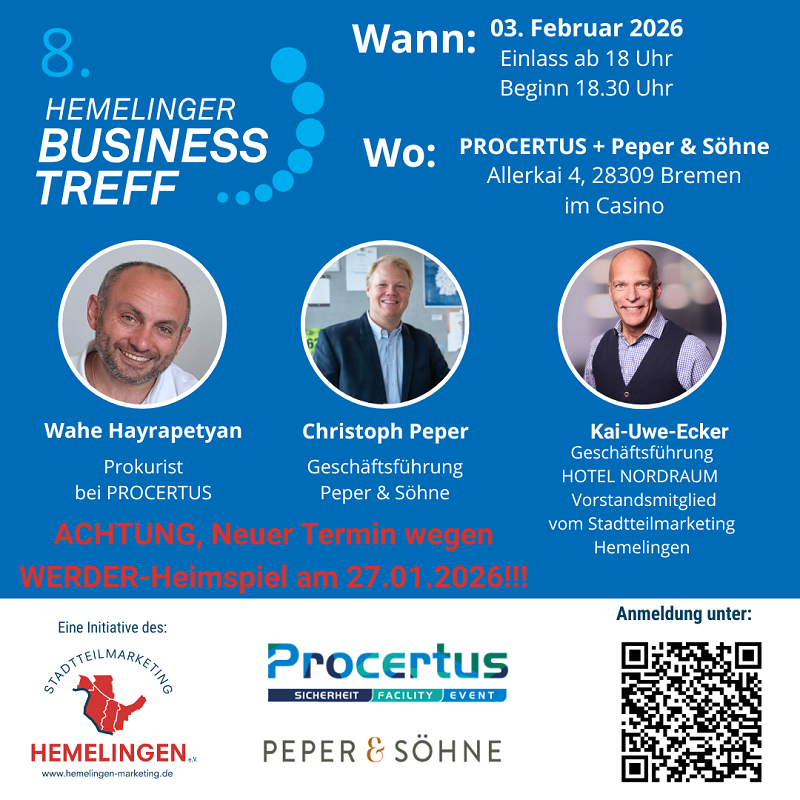 Bereits die letzten Jahren haben wir uns als Stadtteilmarketing dafür eingesetzt, Leerstände in Hemelingen zu beleben, das soll auch in 2026 nicht nachlassen, und deshalb haben wir bereits für Ende Januar einen neuen Termin für unsere Veranstaltungsreihe "Hemelinger FREIRAUMTALK" festgelegt.