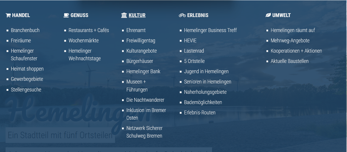 Die Seite THEMEN informiert über wichtige Bereiche in Hemelingen:
